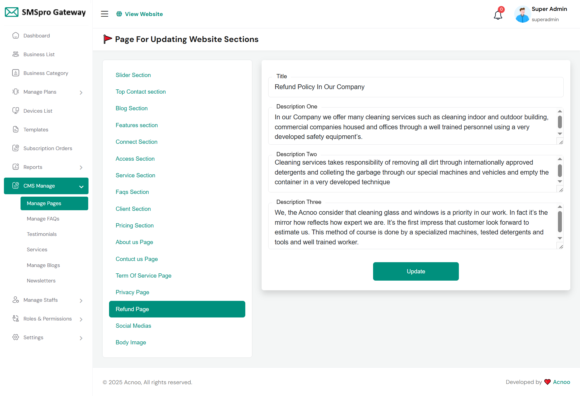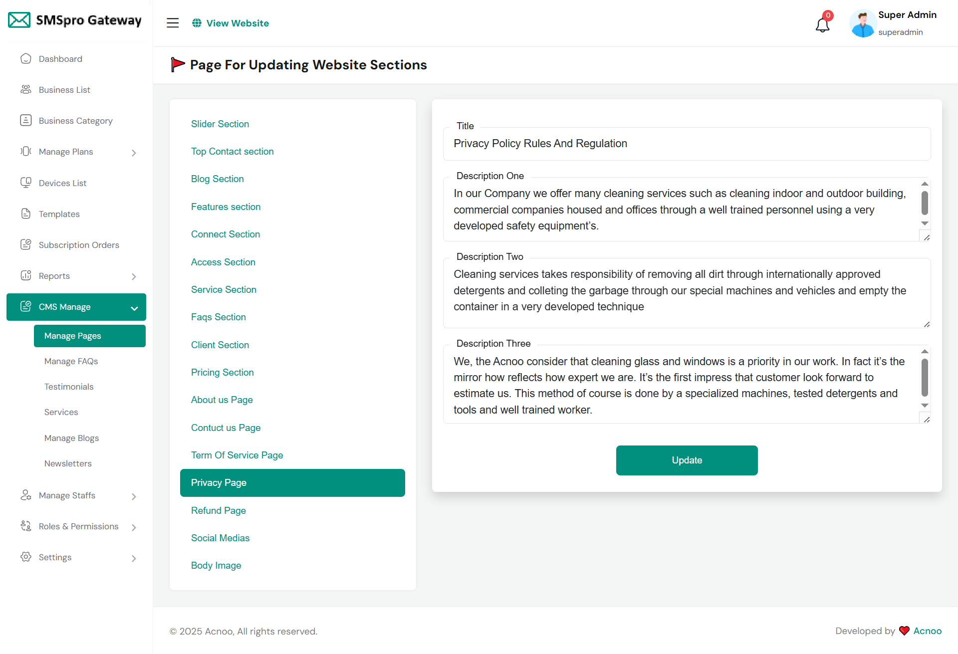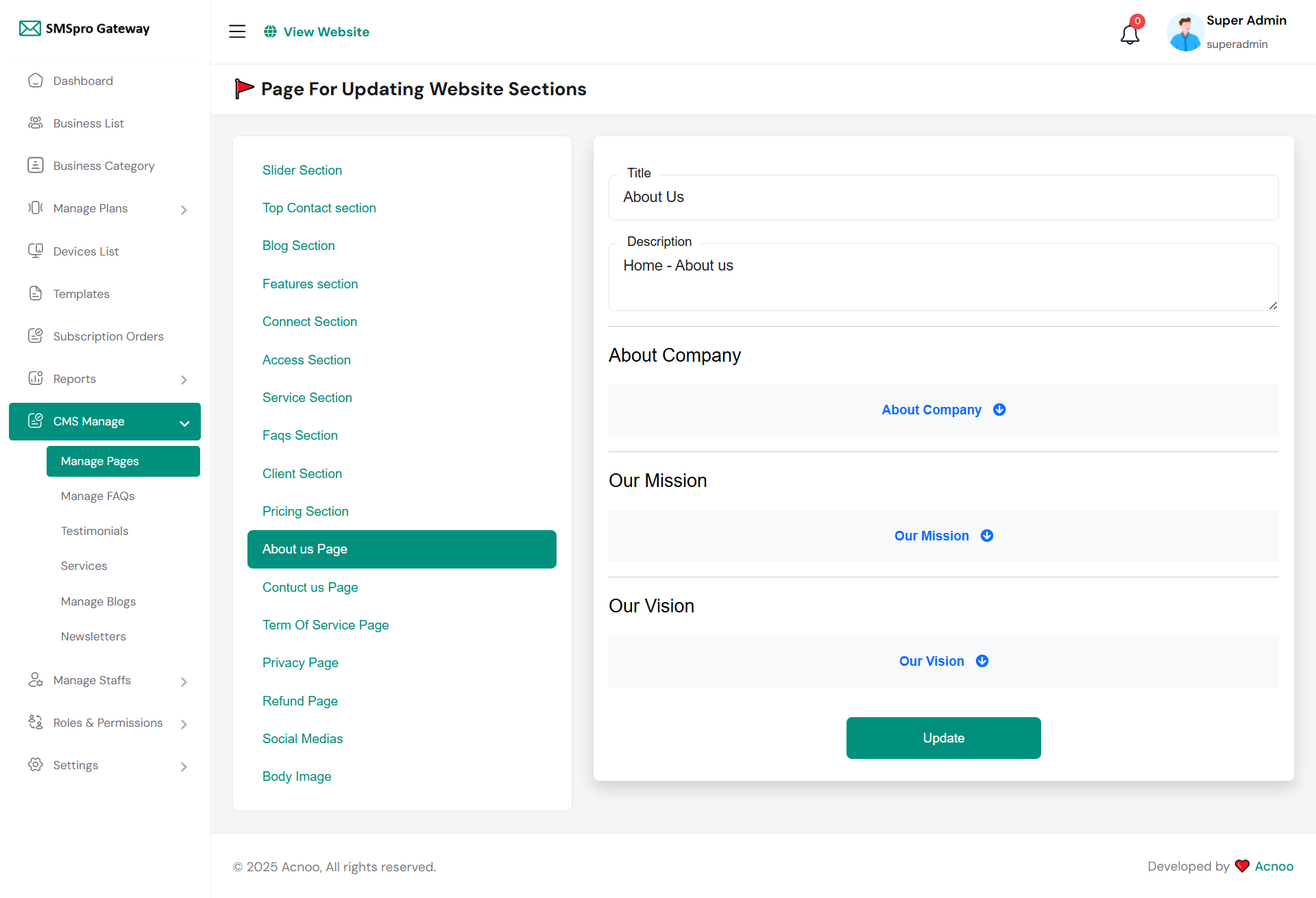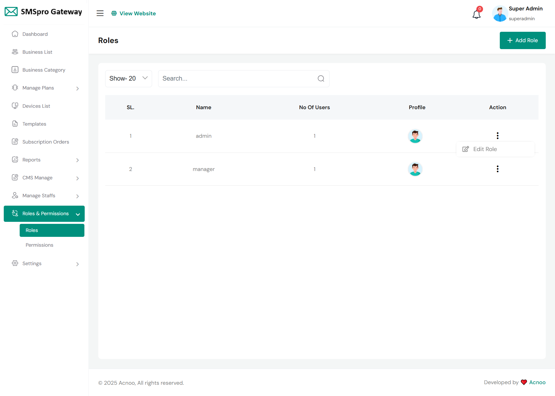In this project, different modules are assigned based on user roles: Super Admin, Admin, and User. Each role has distinct responsibilities tailored to their specific tasks and permissions. Below, we will discuss how each user role operates within the system.