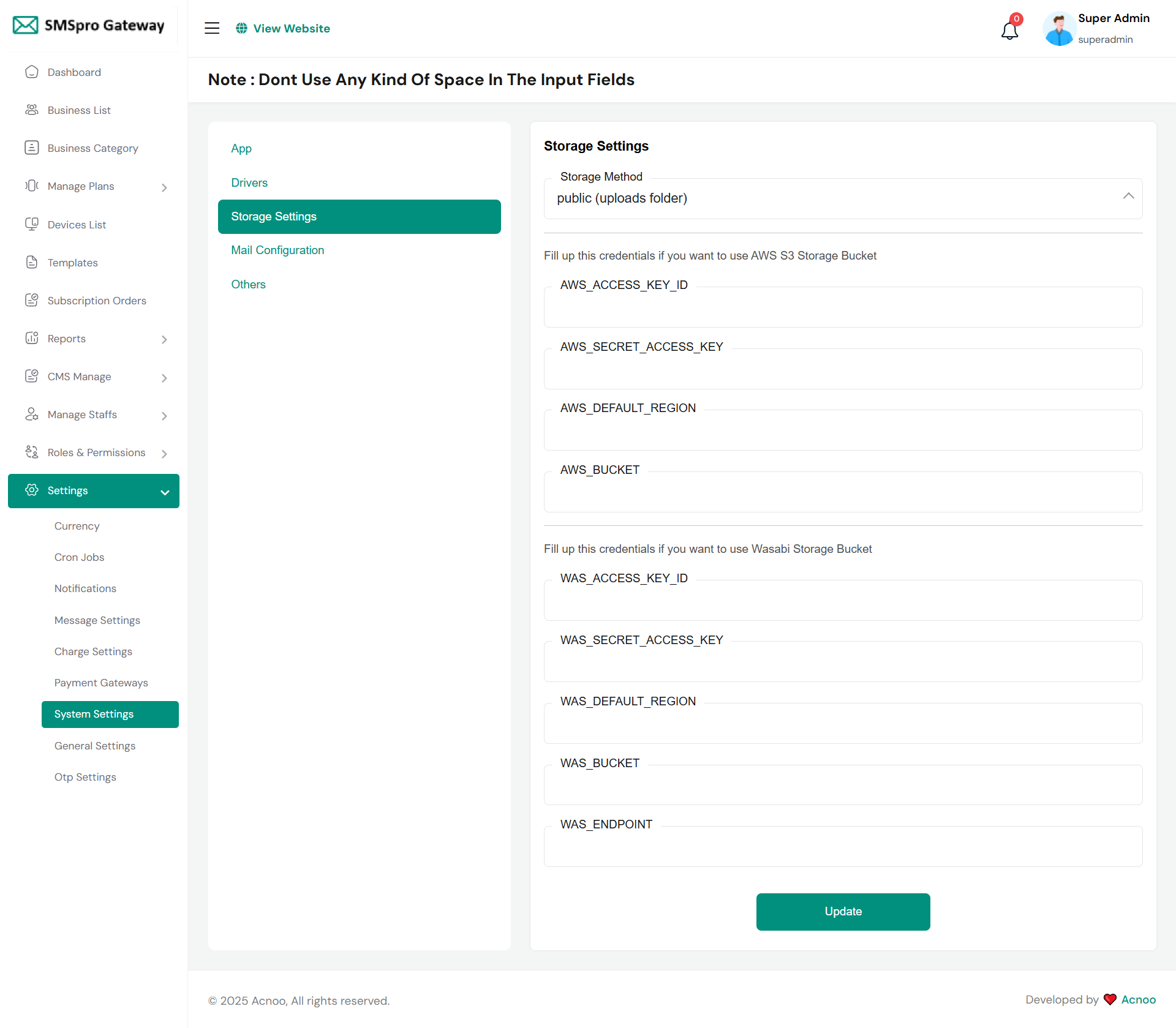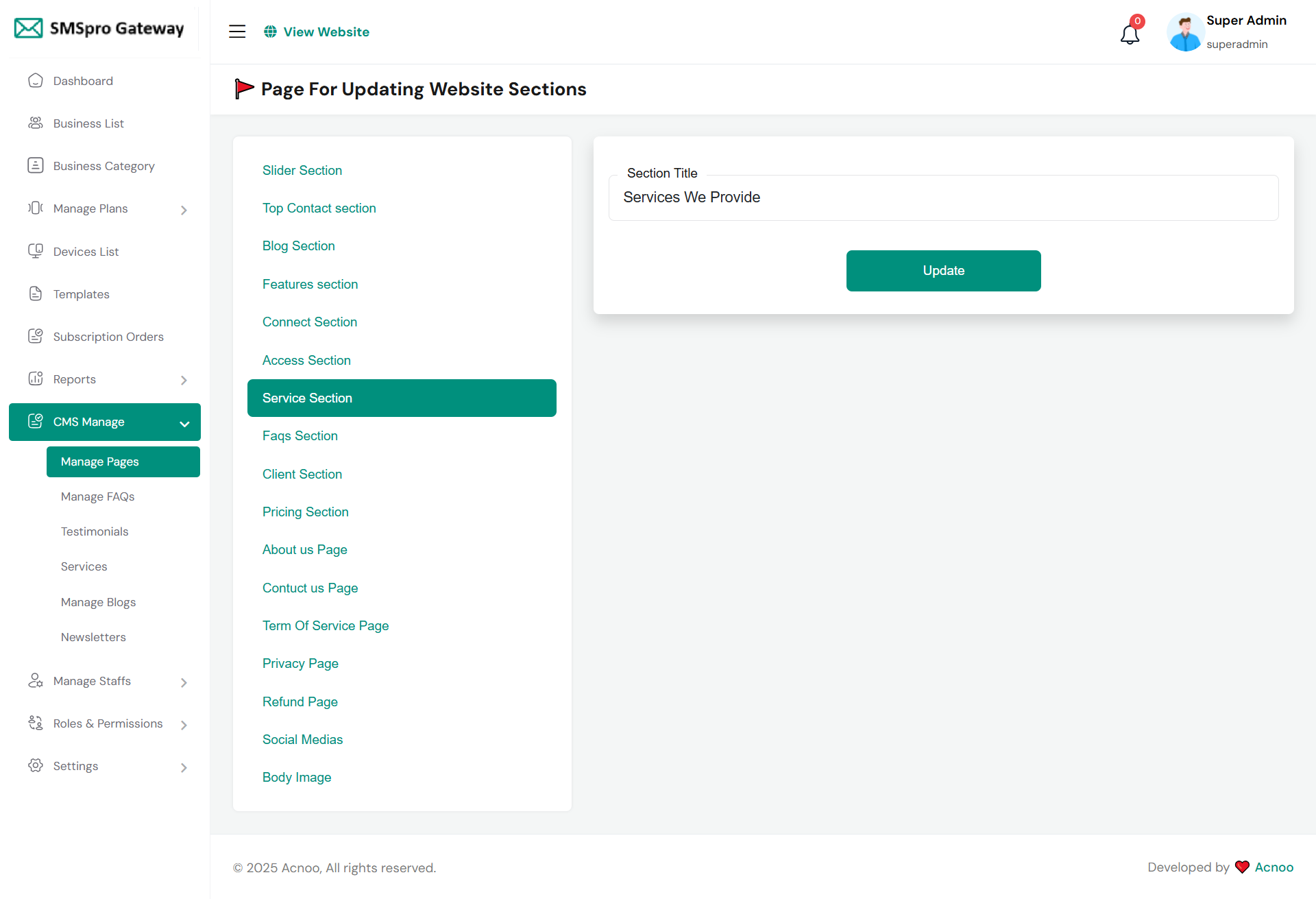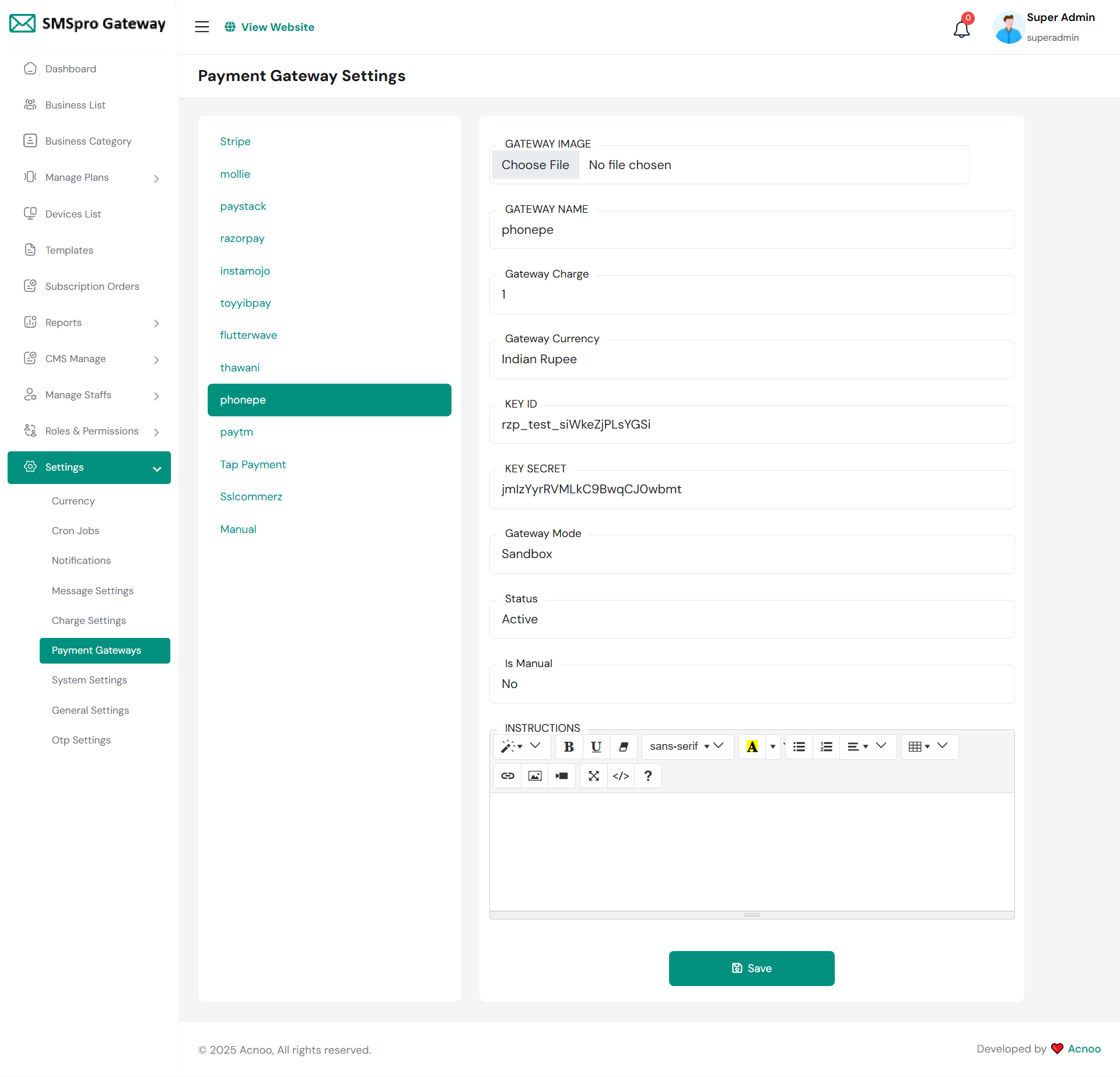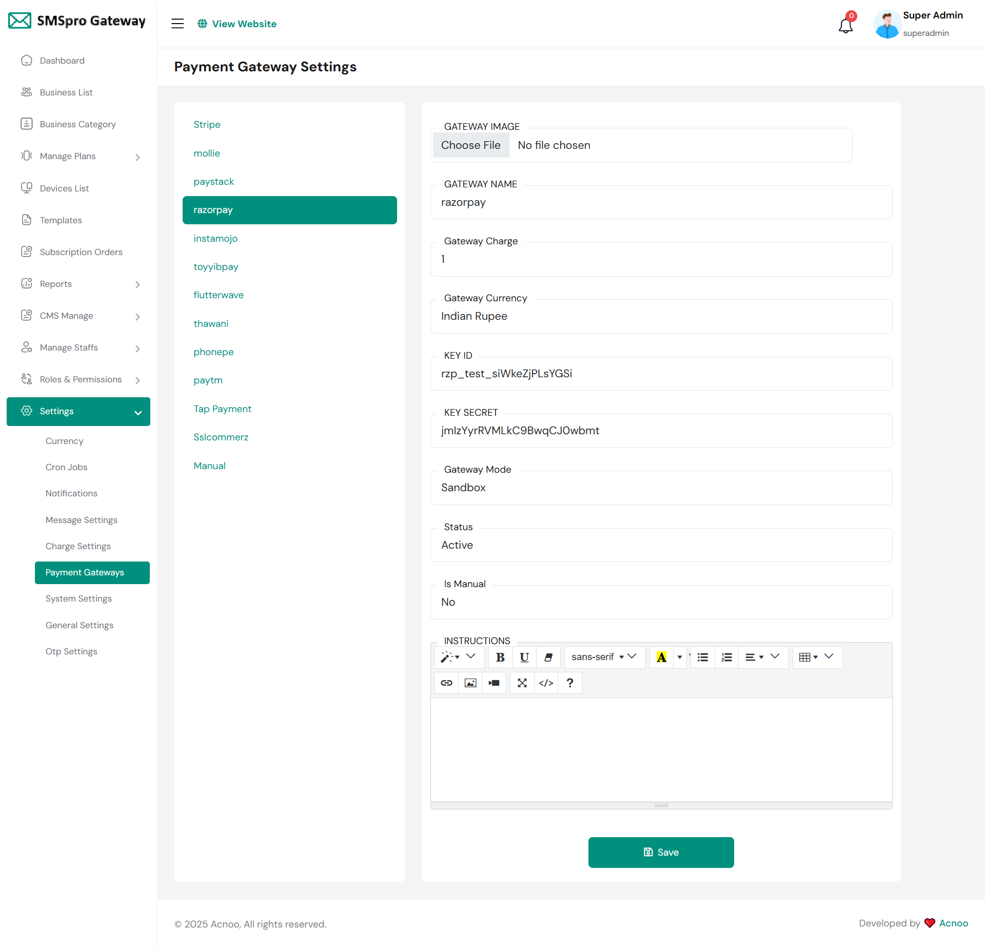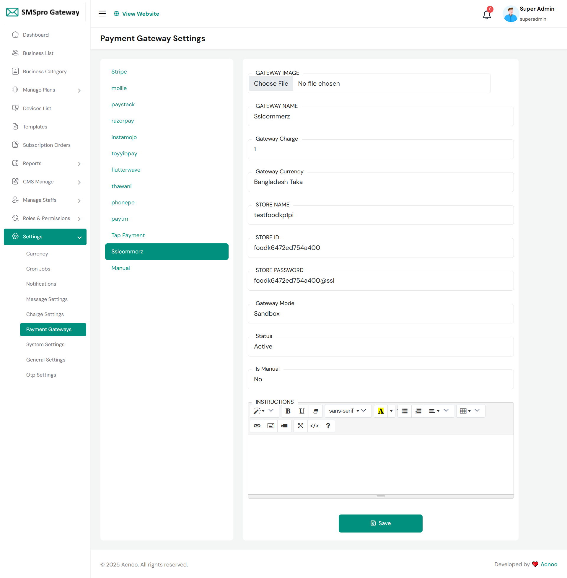 In this section, you can send messages using an SMSpro Gateway. From Gateway Settings, you can change the SMSpro Gateway. The process differs depending on the type of gateway selected. Below, we discuss the two available scenarios: