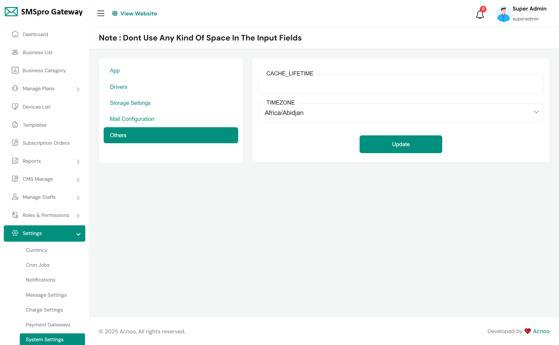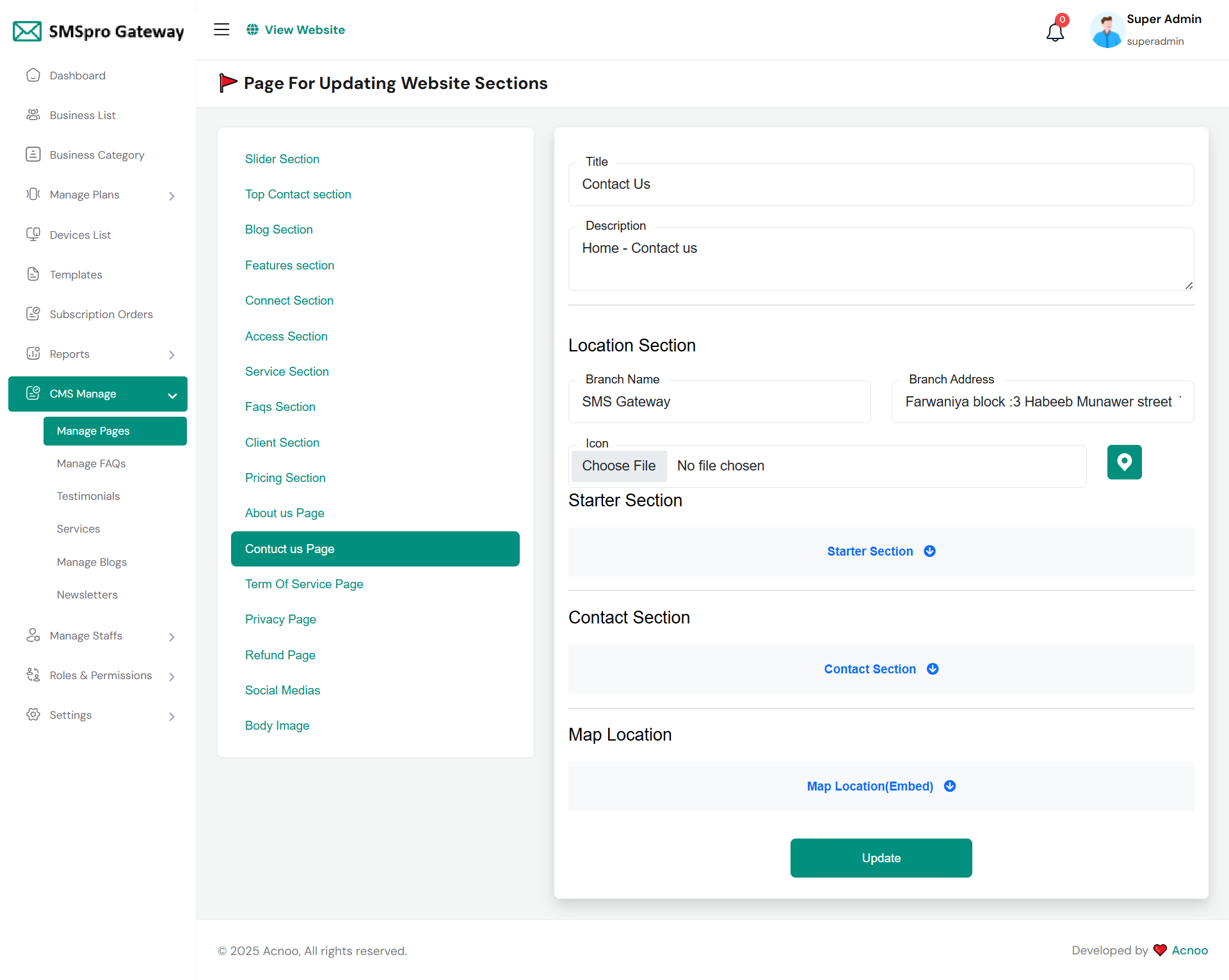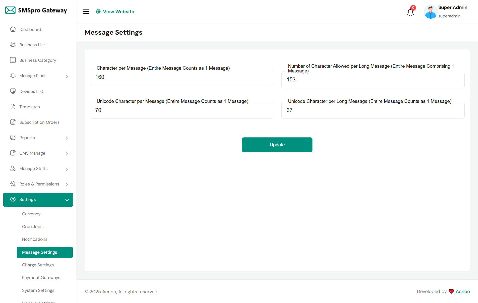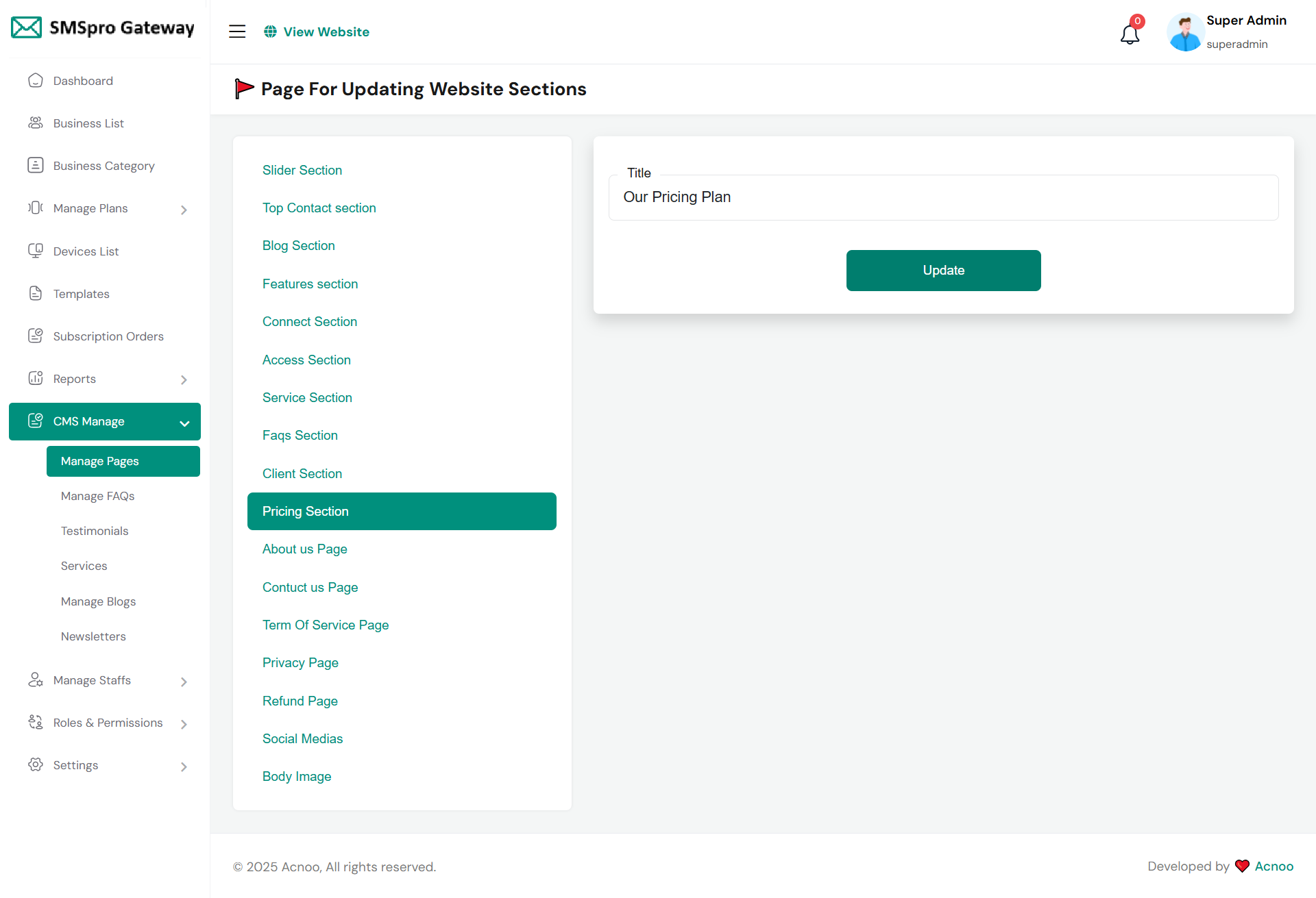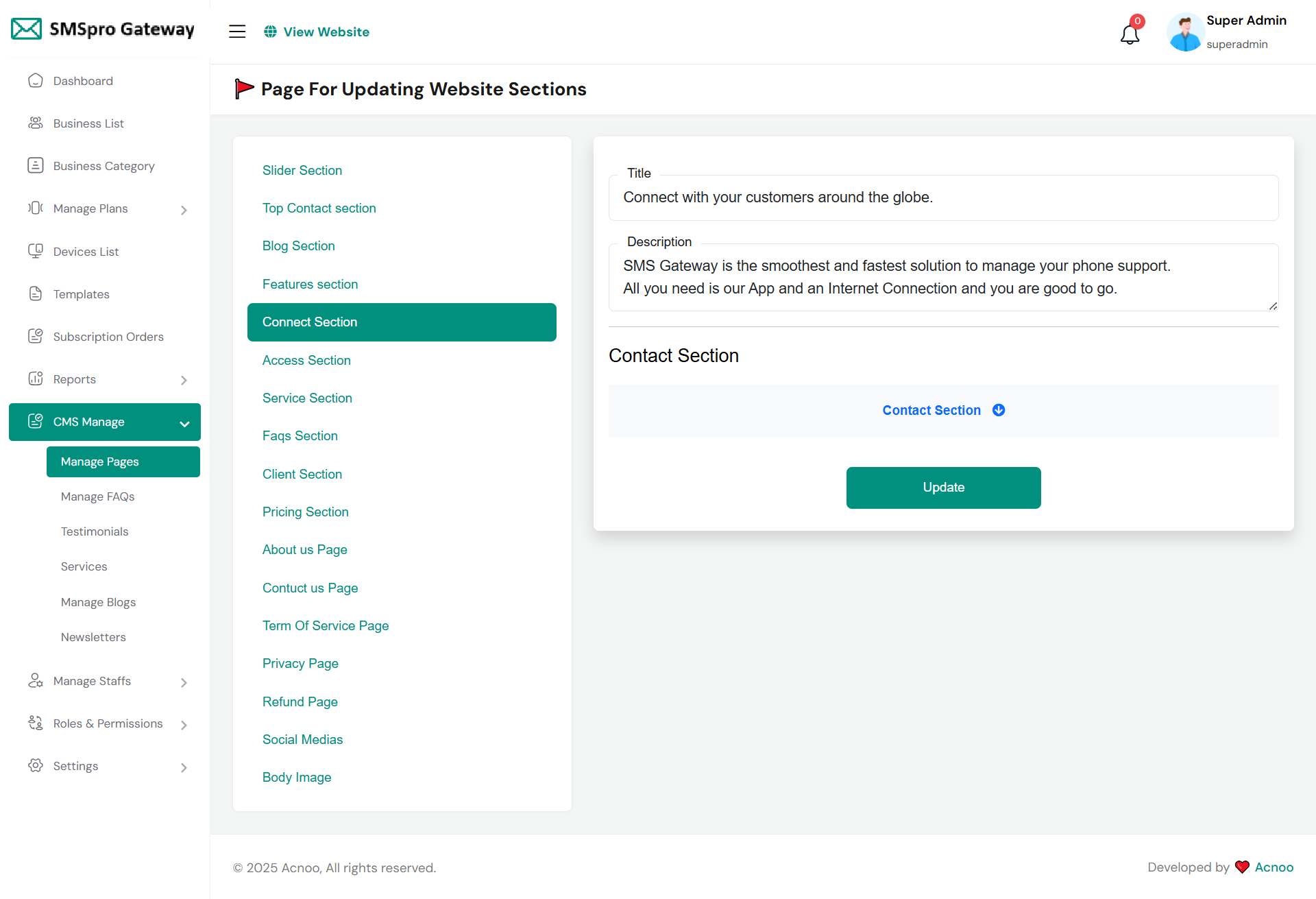 In this section, you can send messages using an SMSpro Gateway. From Gateway Settings, you can change the SMSpro Gateway. The process differs depending on the type of gateway selected. Below, we discuss the two available scenarios: