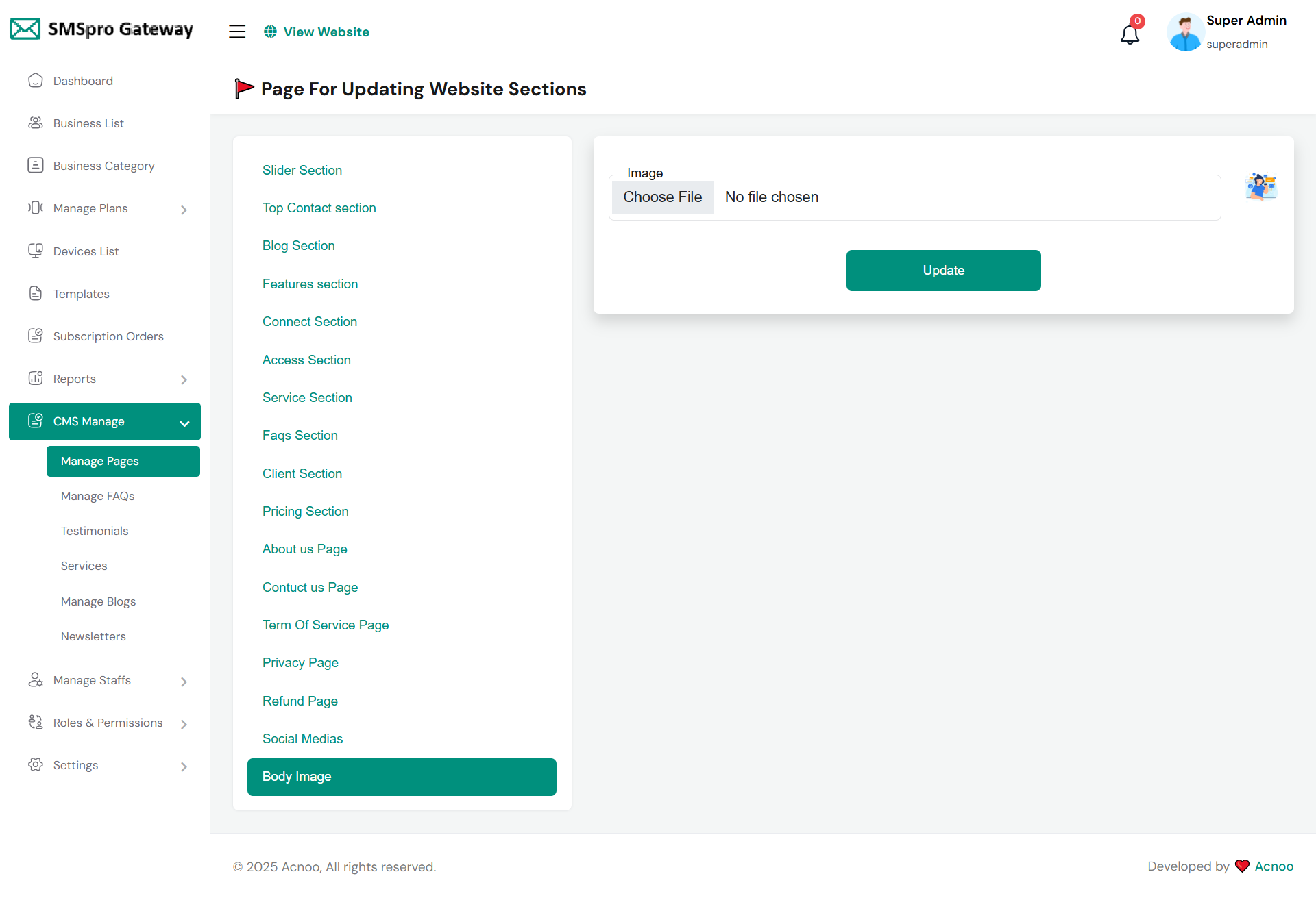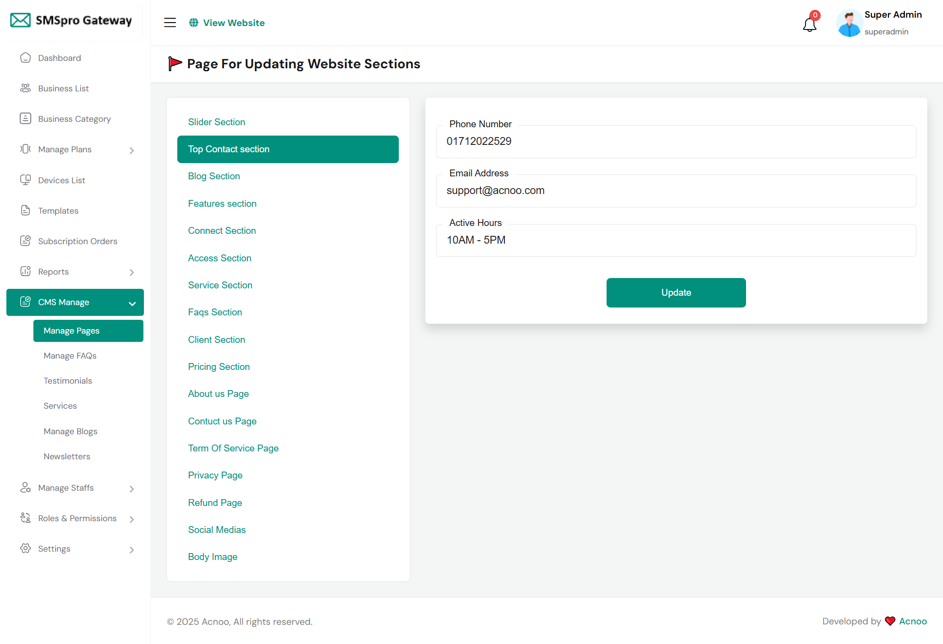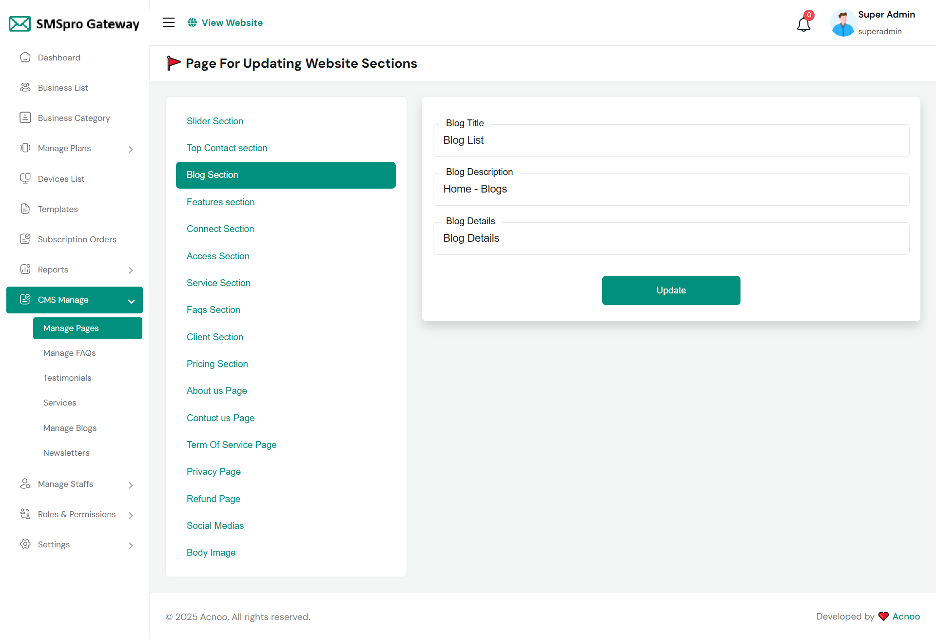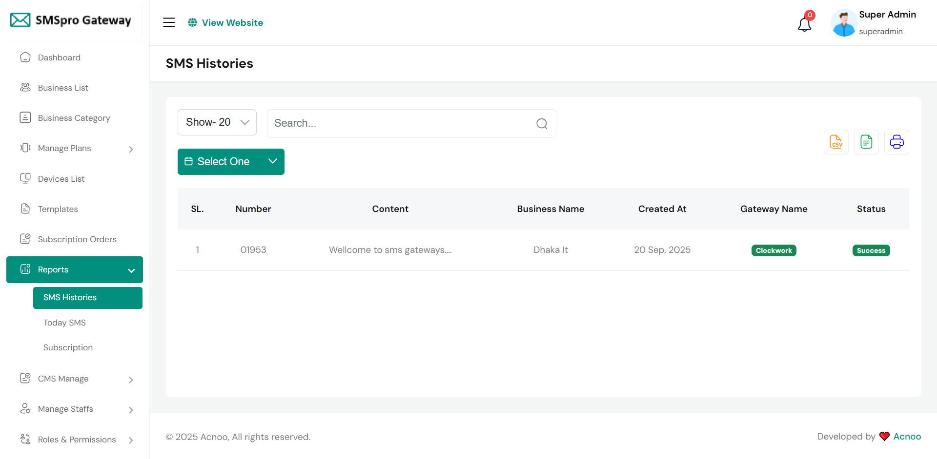 In this section, you can send messages using an SMSpro Gateway. From Gateway Settings, you can change the SMSpro Gateway. The process differs depending on the type of gateway selected. Below, we discuss the two available scenarios: