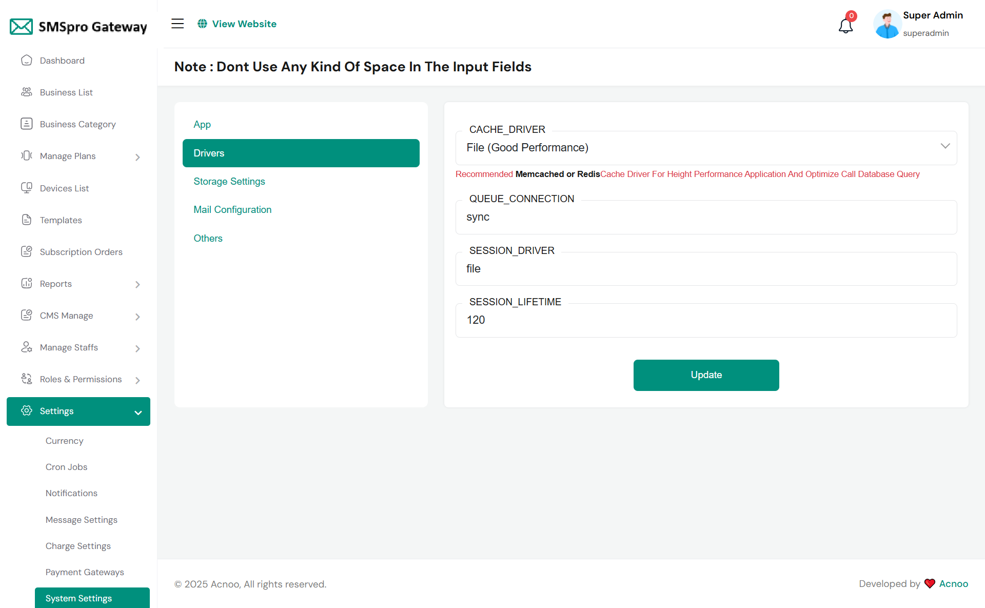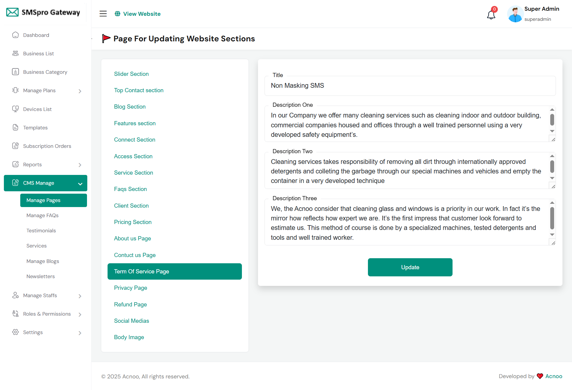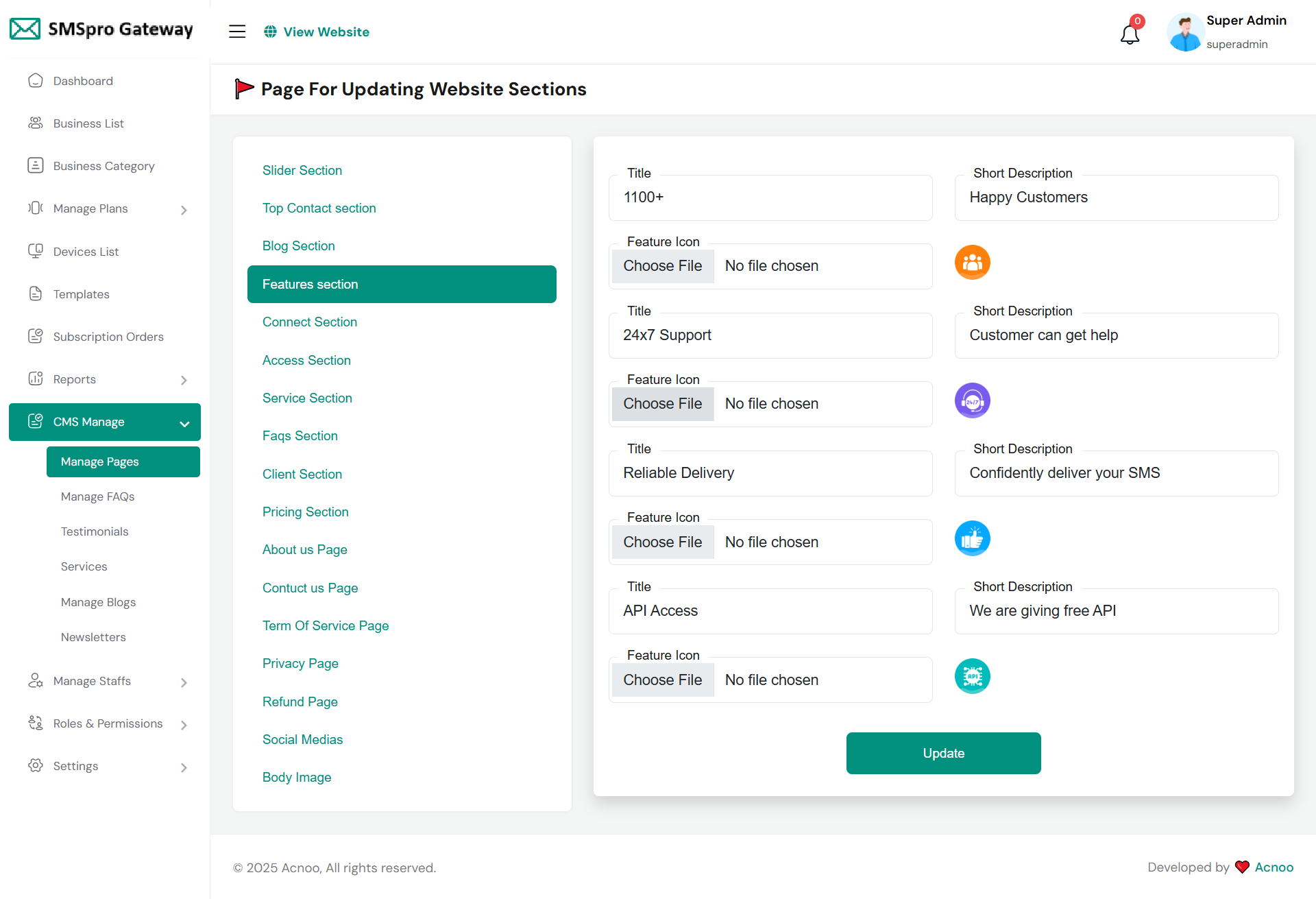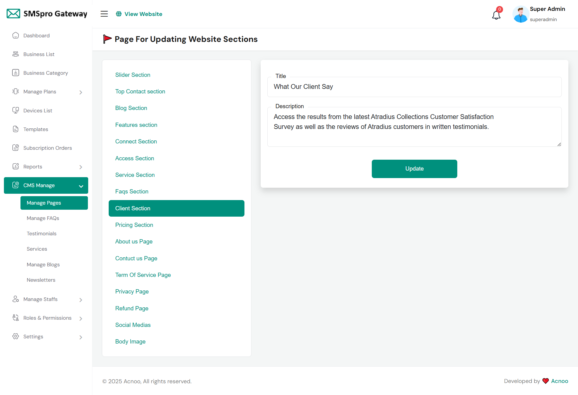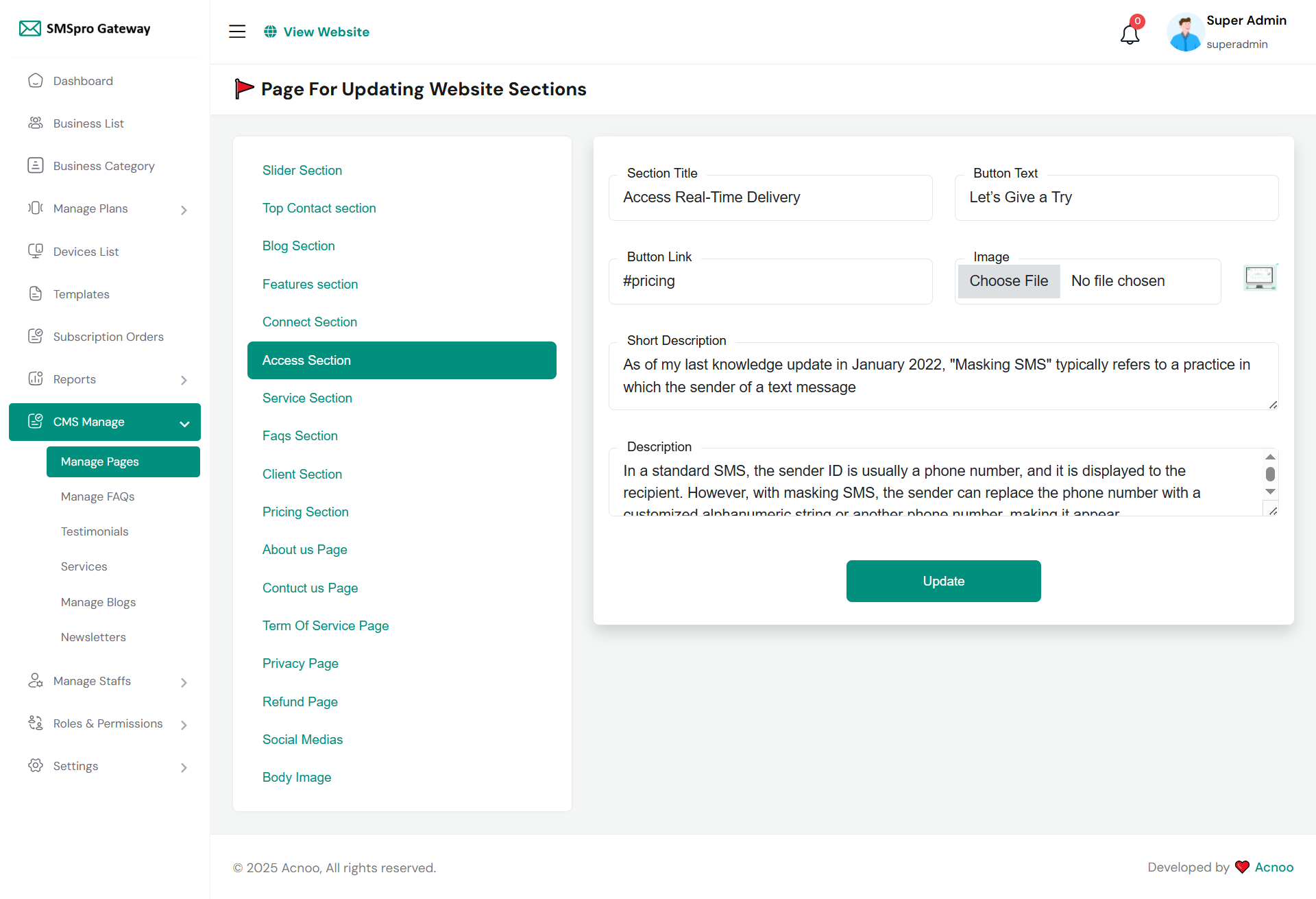 In this section, you can send messages using an SMSpro Gateway. From Gateway Settings, you can change the SMSpro Gateway. The process differs depending on the type of gateway selected. Below, we discuss the two available scenarios: