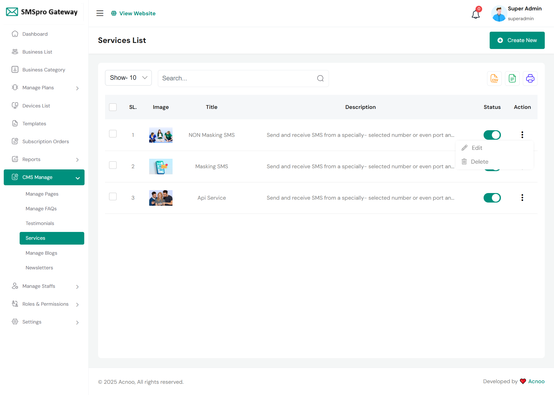Here, you can view a list of available plans and perform actions such as updating and deleting plans. Also you can edit and delete exesting plan from this list.