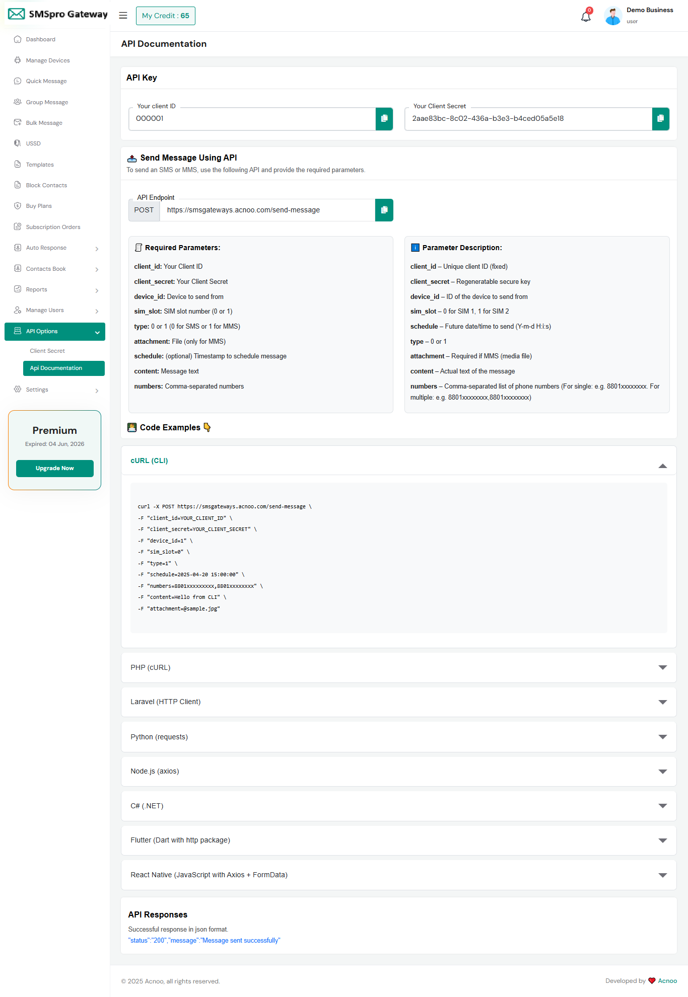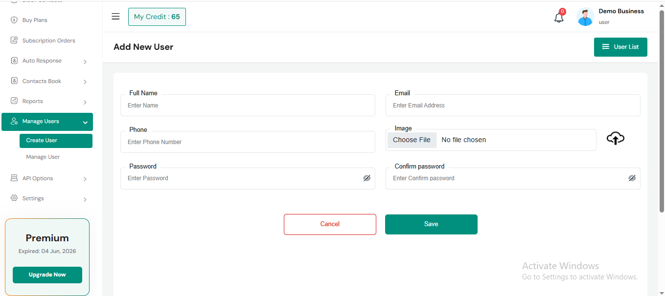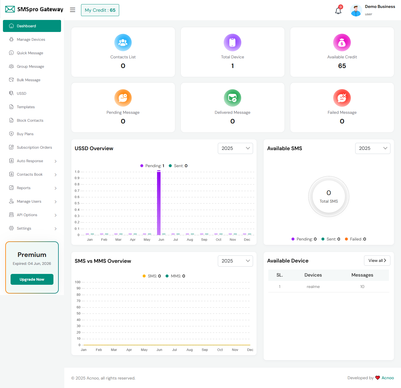 This is the user panel, where users can access their account details. They can also send messages to their customers or recipients. They have the option to send quick SMS messages or group SMS messages. Additionally, they can send campaign requests from their panel.