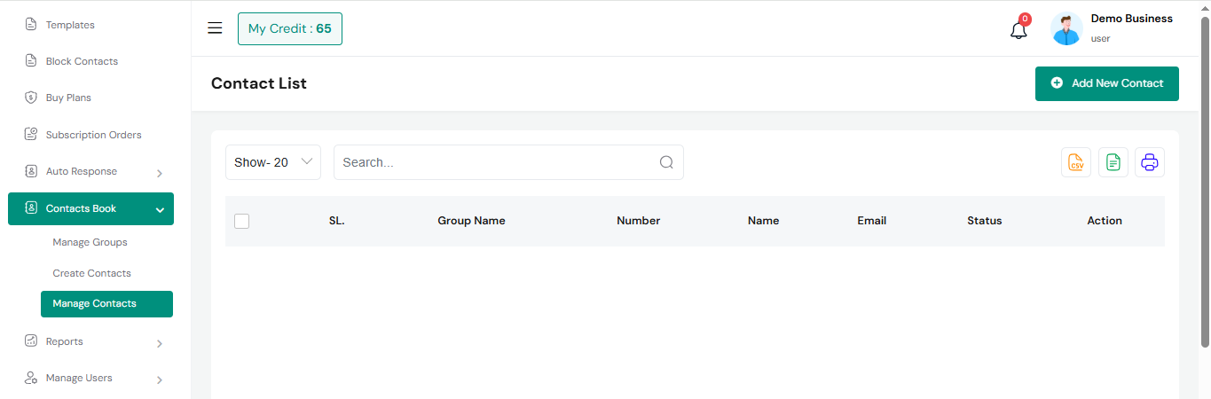 In this section, you can view a list of contacts, and there is an option to filter the list using a search function. Additionally, you can edit or delete contacts as needed.