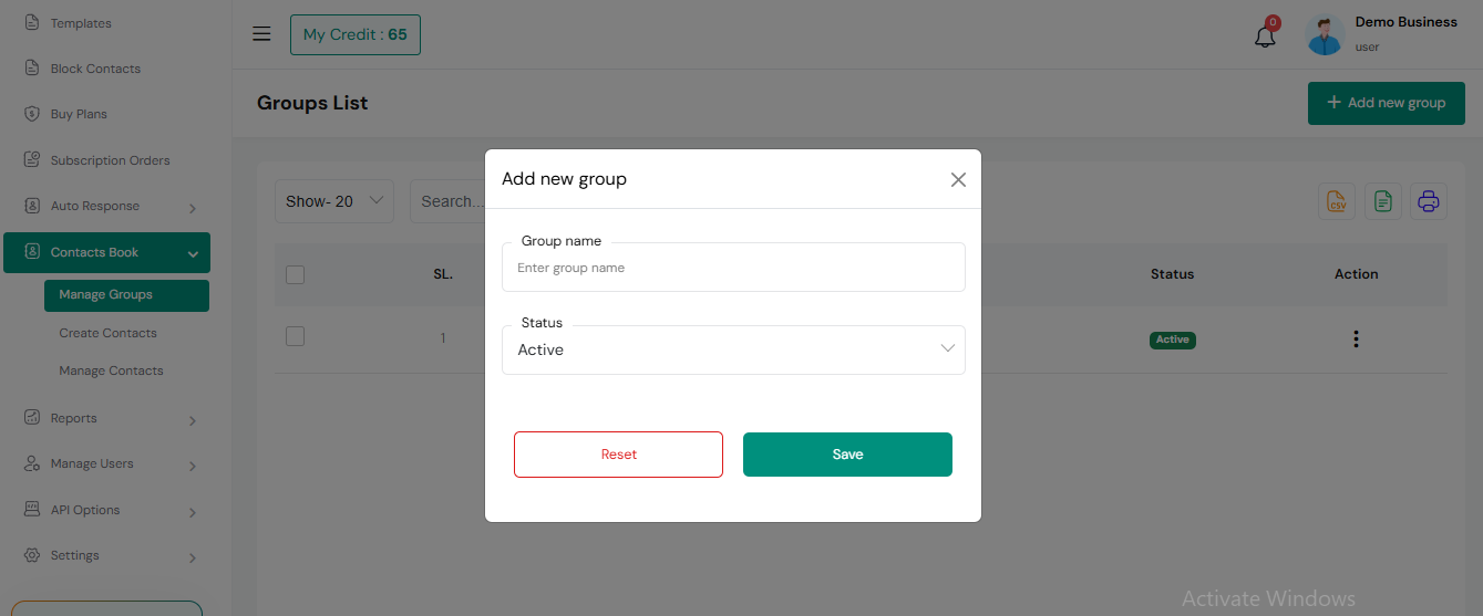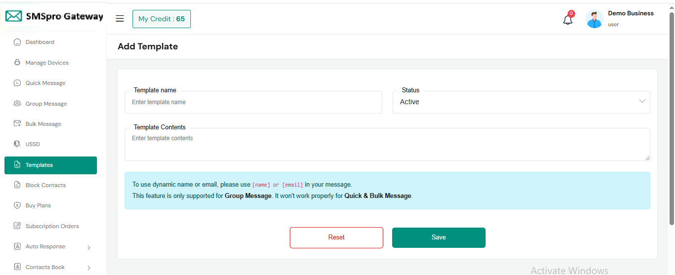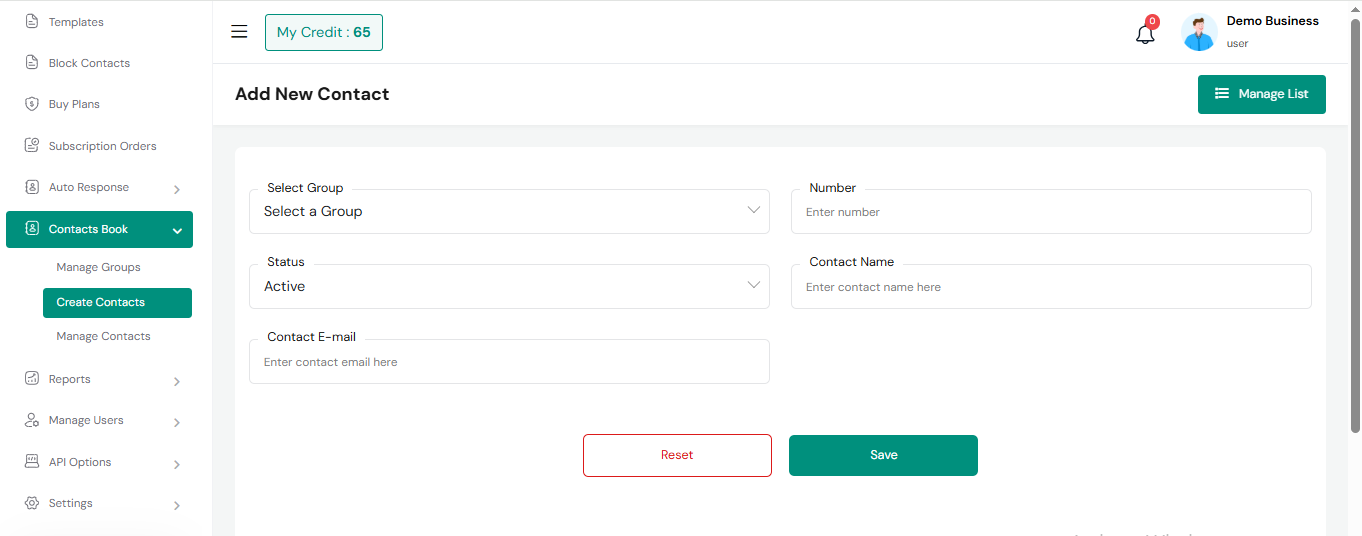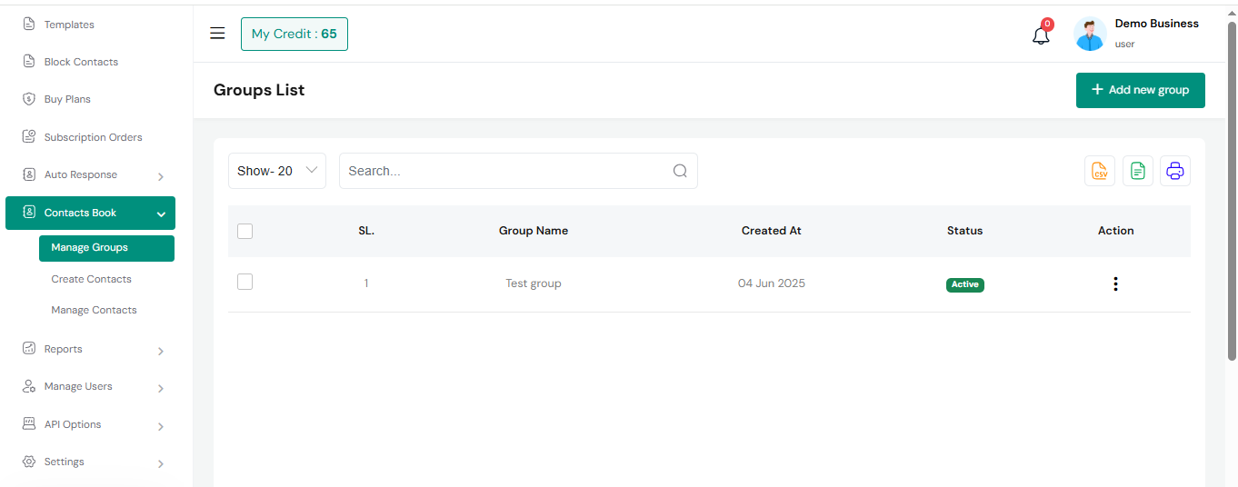 Similar to the Quick SMS section, you have the option to send SMS messages here. However, you can select a group from a list instead of manually inserting multiple numbers. This feature streamlines the process, especially if you have predefined groups for your recipients.