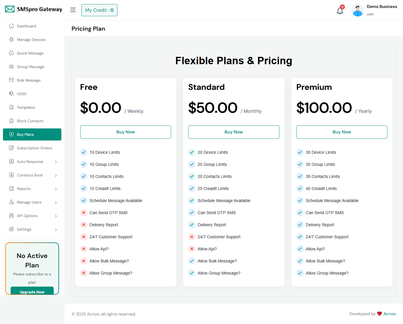 Here, you can view your current plan status and explore all available plans. You can also upgrade your plan from this page.