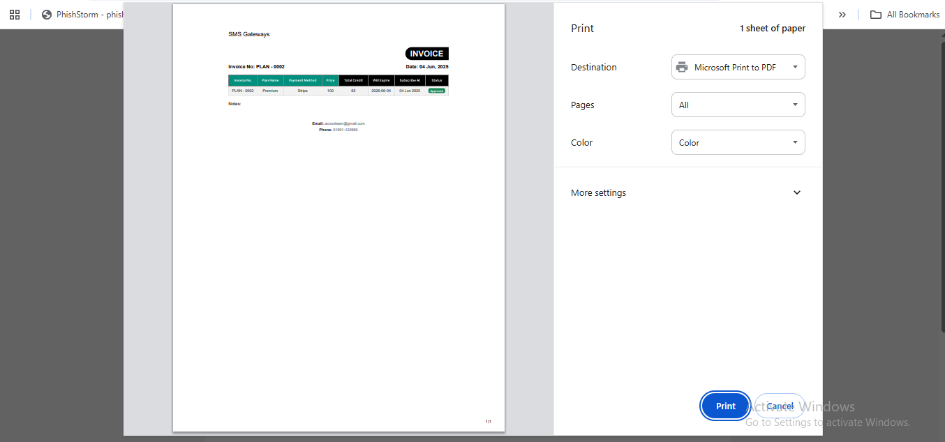 When click print button you see below screen. Now you are able to save or print this invoice.