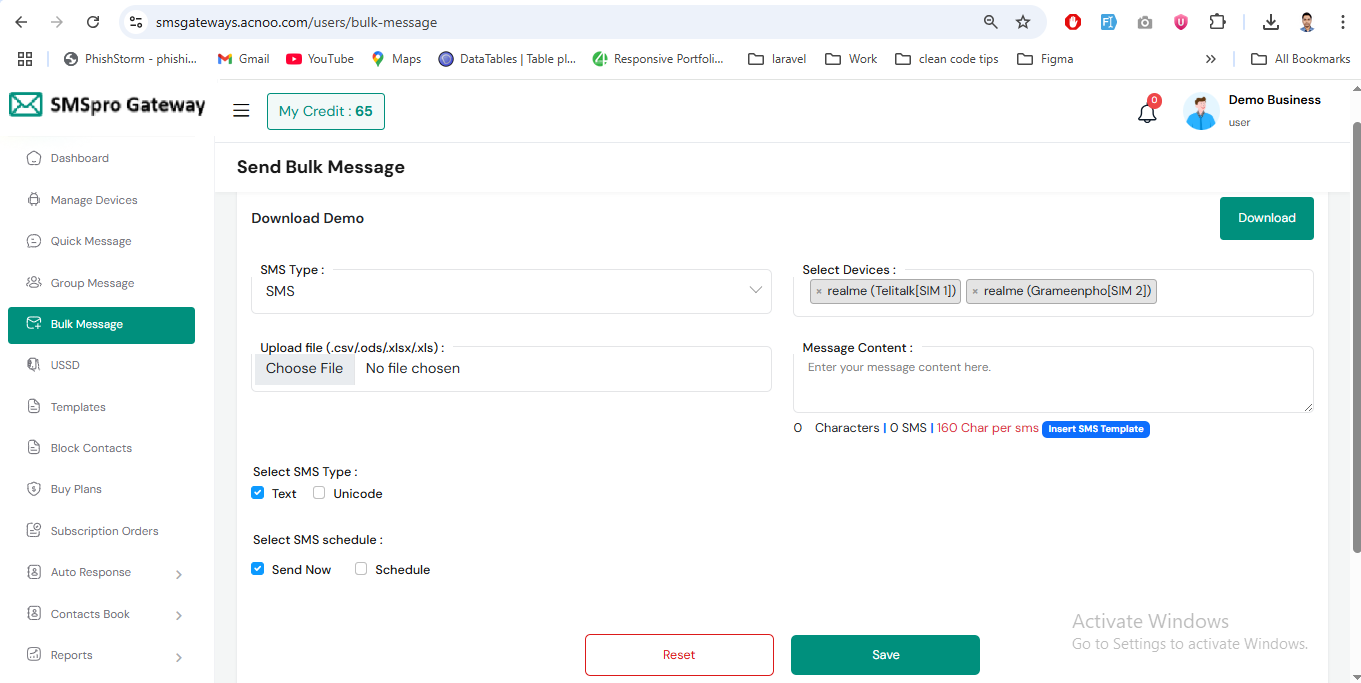 Here you can send bulk SMS.For this, first download the Excel template. Fill in the information in the downloaded Excel file. After completing the form, upload the file and provide the other required fields.