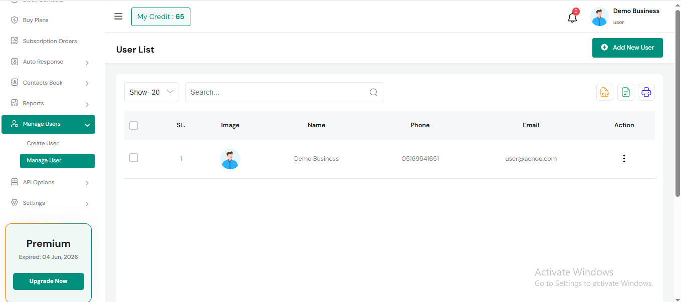 Here, you can view the user list, update user details, and use available search filters and export options.